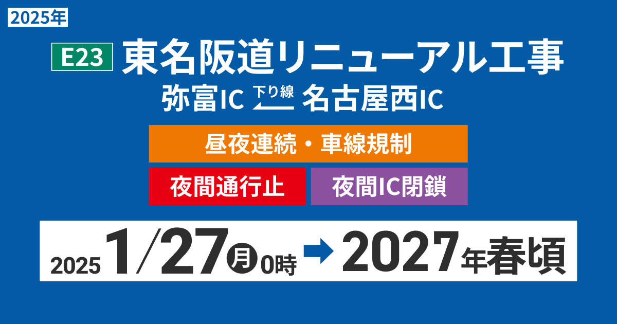 ここで東名阪リニューアル工事のお知らせです。(2027年春ごろまで)